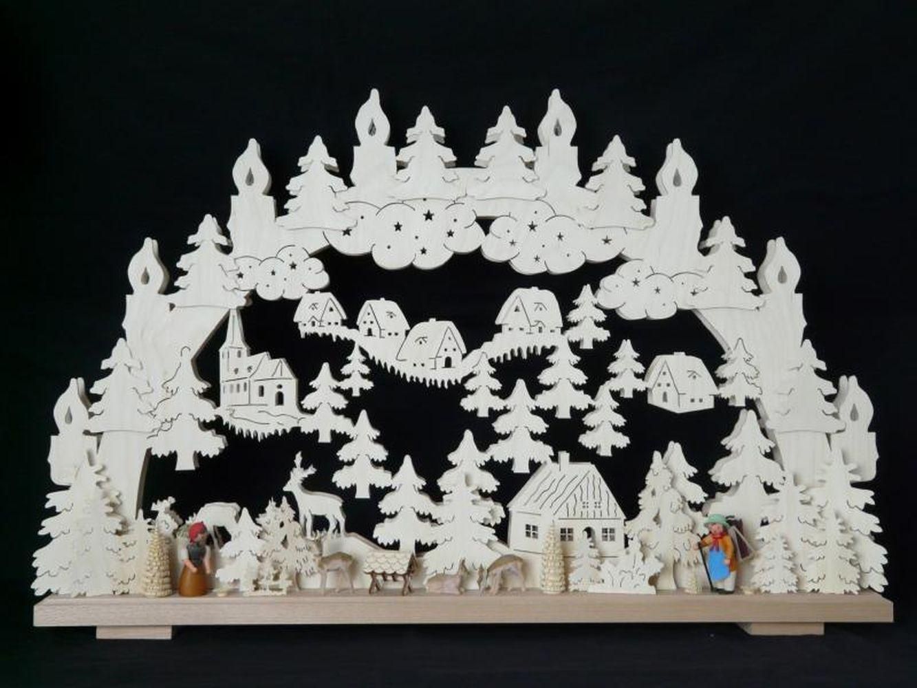 Schwibbogen mit kleinen Figuren und Beleuchtung BxHxT 70x42x7cm NEU Lichterbogen
