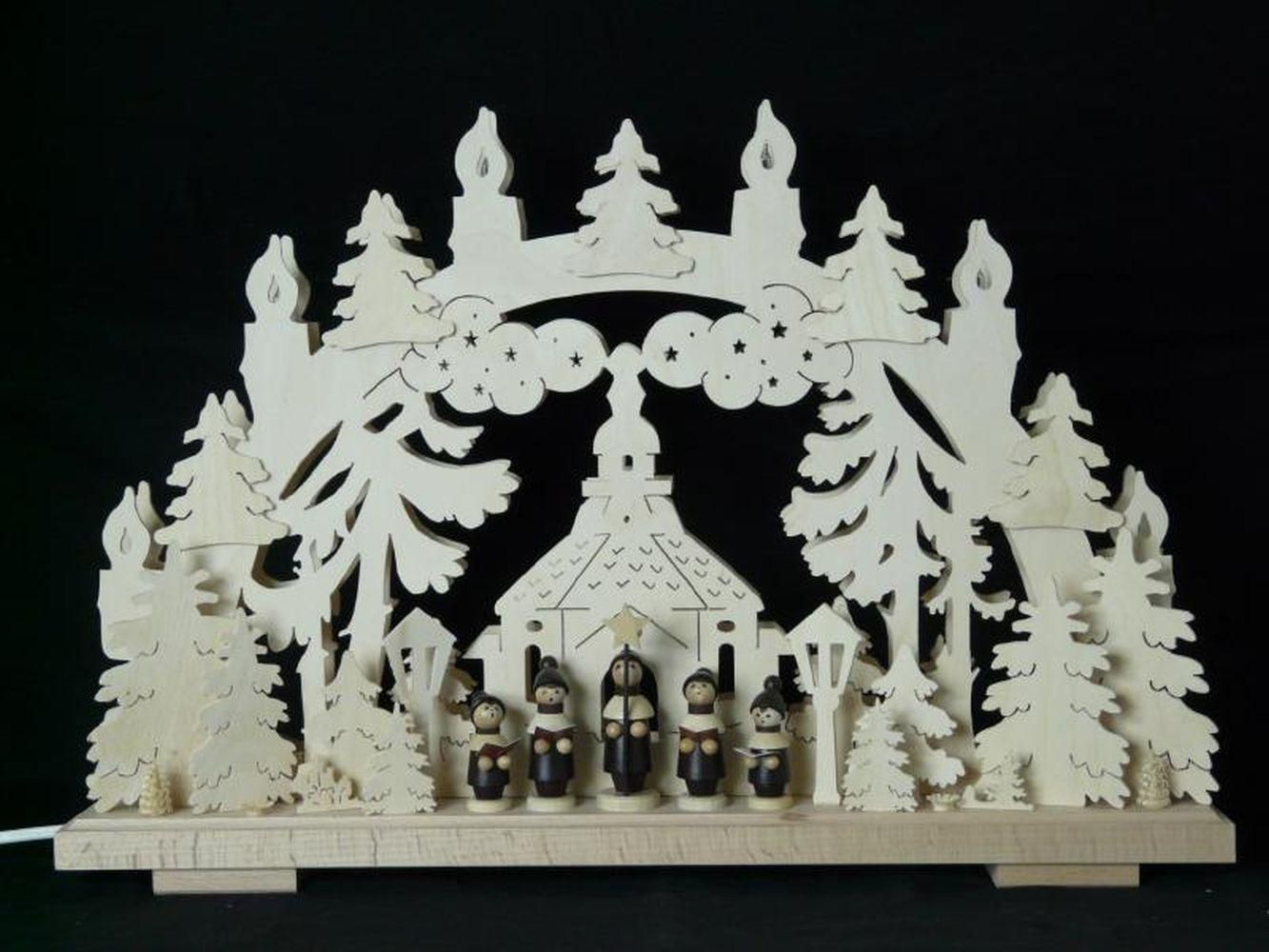 Schwibbogen mit Kurrende Kirche und Beleuchtung BxHxT 50x35x7cm NEU Lichterbogen