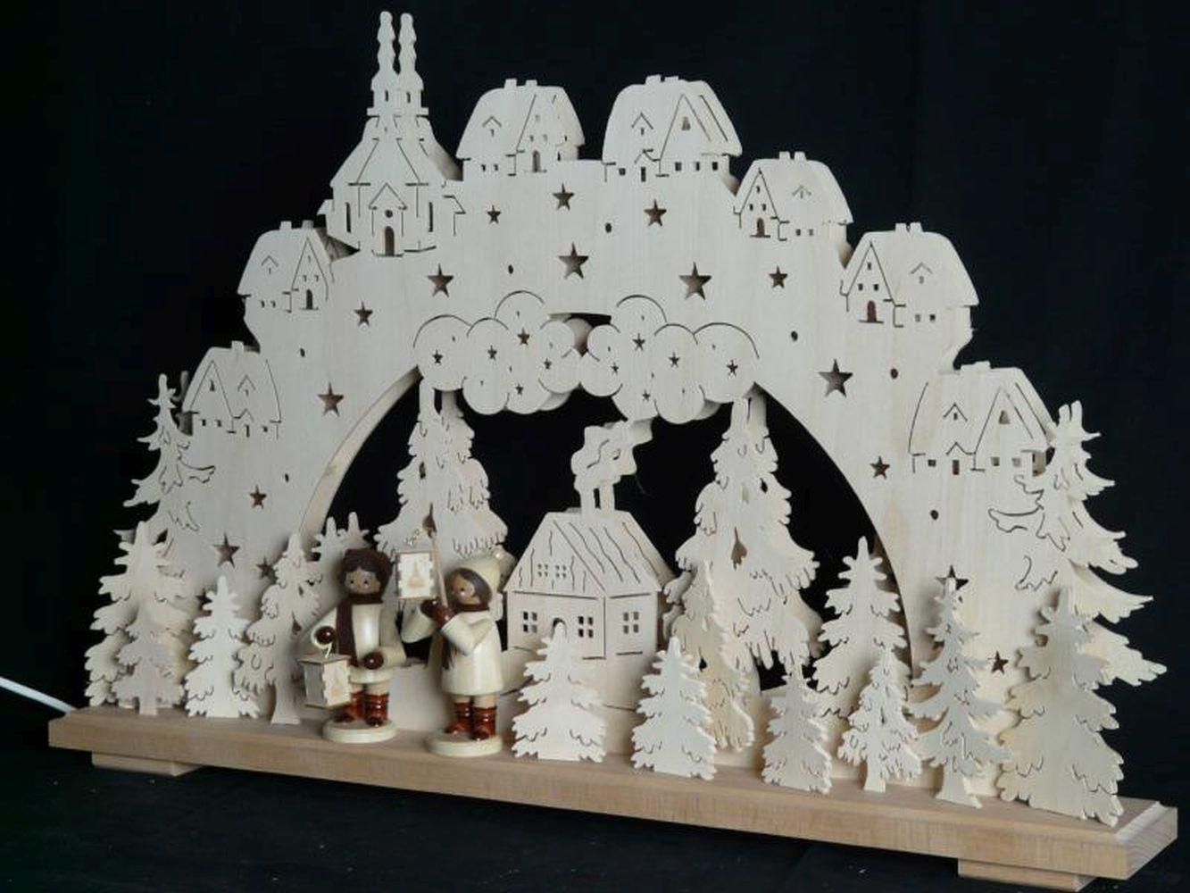 Schwibbogen mit Laternenkinder natur und Beleuchtung BxHxT 70x43x7cm NEU