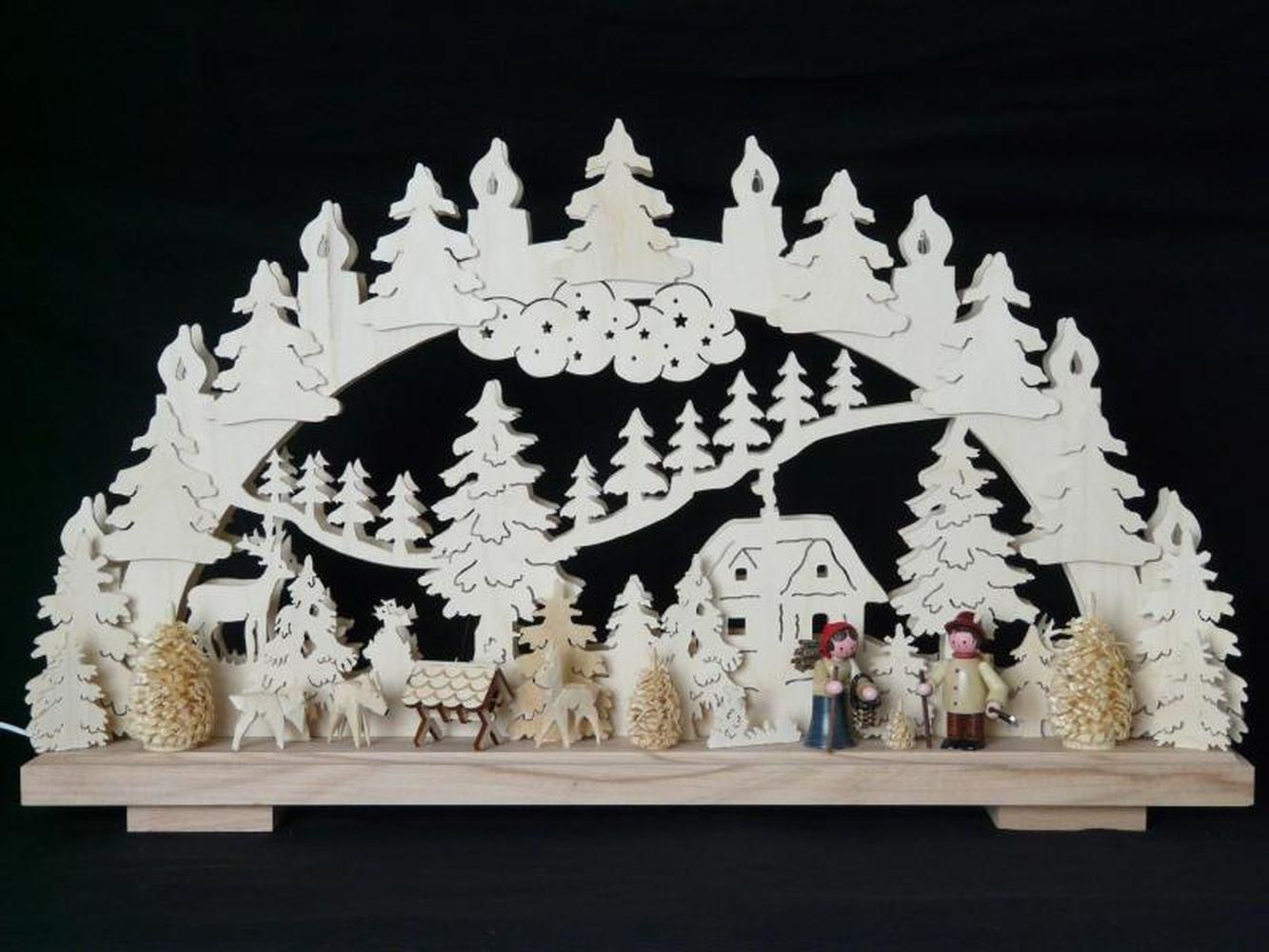 Schwibbogen mit Rehen Waldleute und Beleuchtung BxHxT 50x32x7cm NEU Lichterbogen