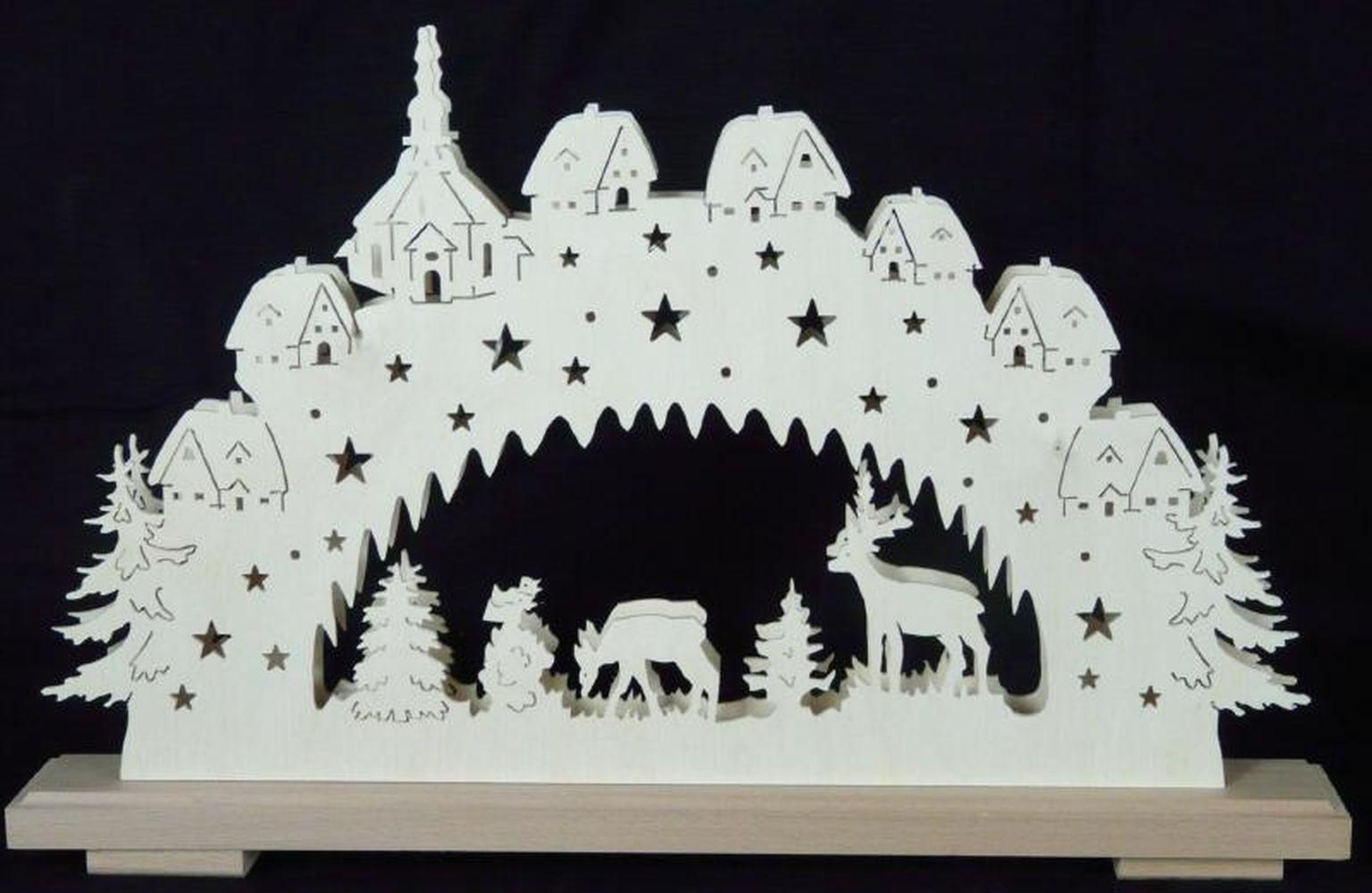 Schwibbogen mit Rehgruppe und Beleuchtung BxHxT 50x32x7cm NEU Lichterbogen Fenste