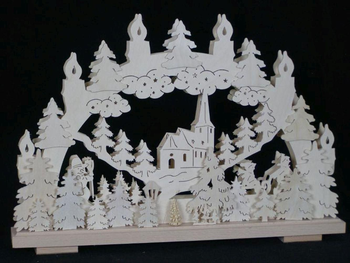 Schwibbogen mit Schlittenkinder Schneemann Kirche und Beleuchtung BxHxT