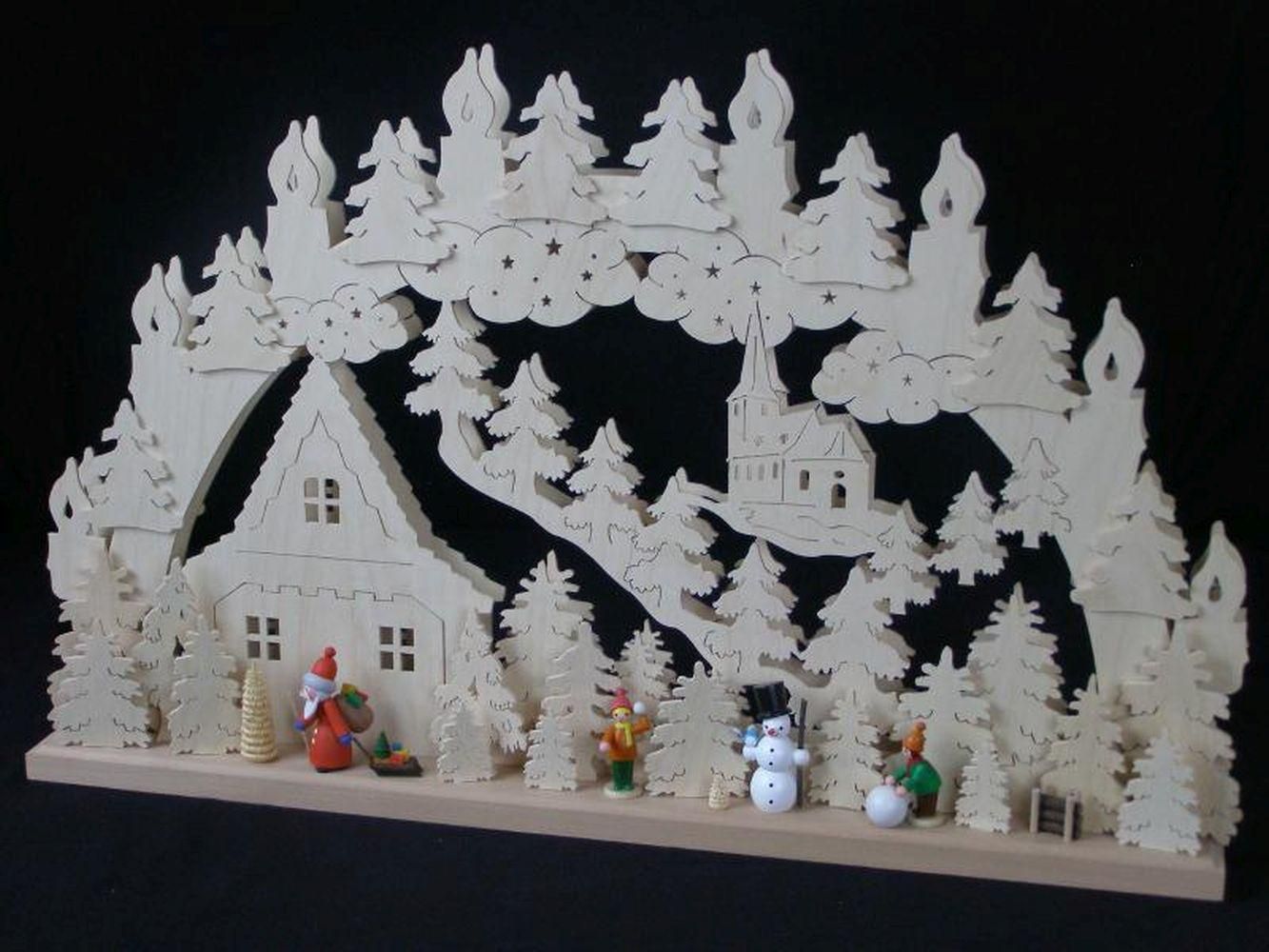 Schwibbogen mit Schneemann Weihnachtsmann und Beleuchtung BxHxT 70x40x7cm NEU