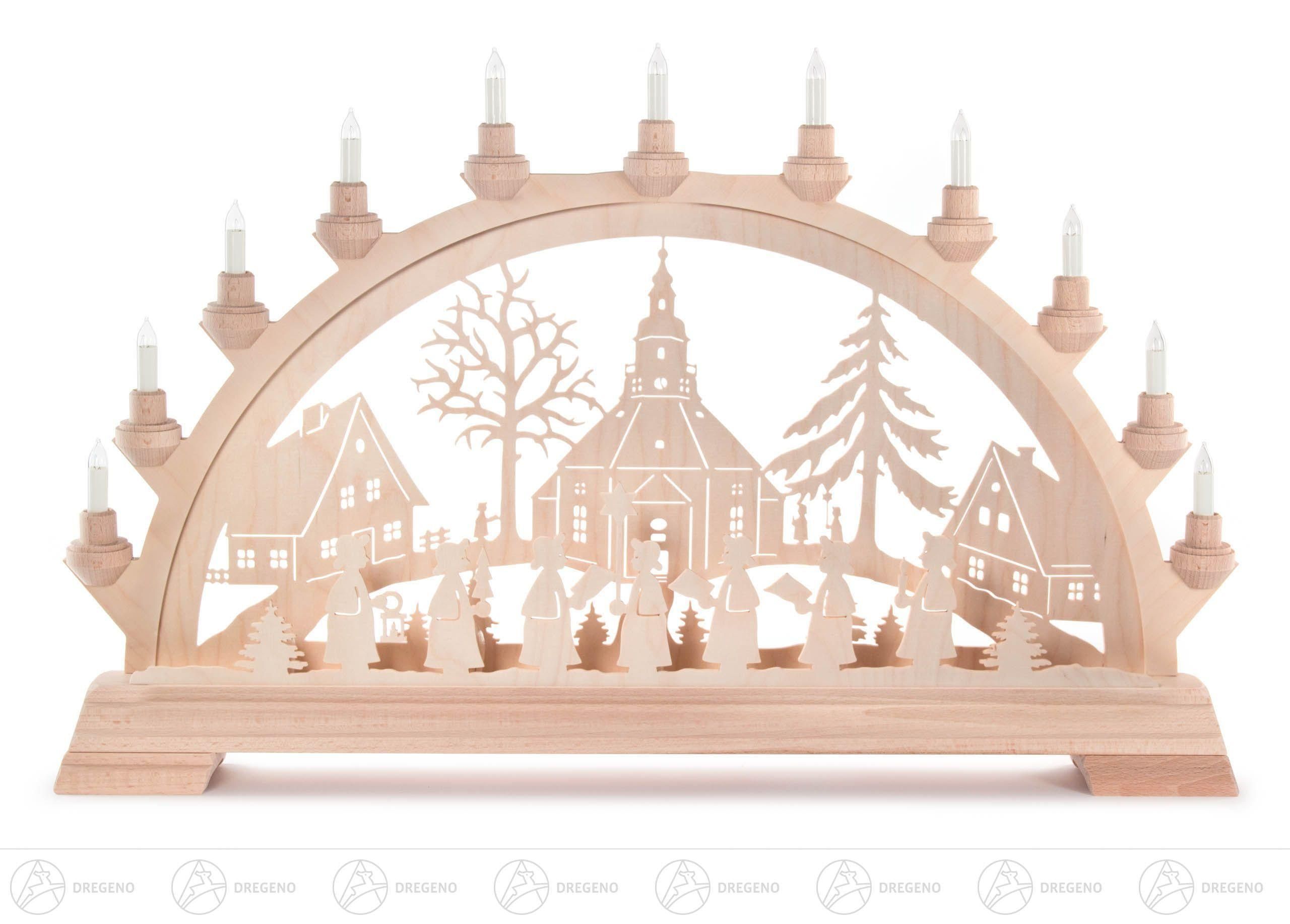 Schwibbogen mit Seiffener Dorf u. Kurrende elektrisch beleuchtet 63cmx40cmx6,5cm