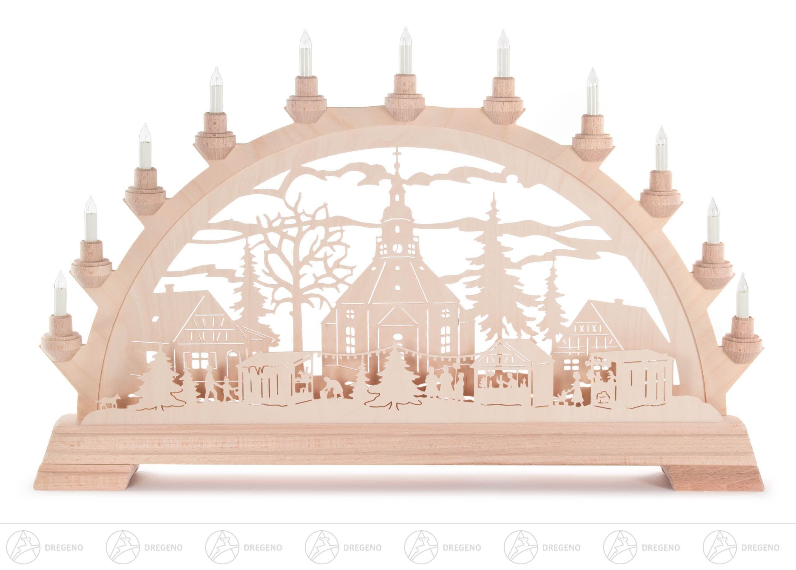 Schwibbogen mit Seiffener Weihnachtsmarkt elektrisch beleuchtet 63 cmx40 cmx6 cm