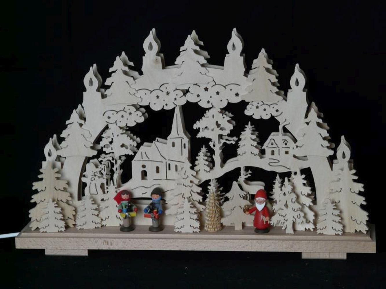Schwibbogen mit Striezelkinder Weihnachtsmann und Beleuchtung BxHxT 50x31x7cm