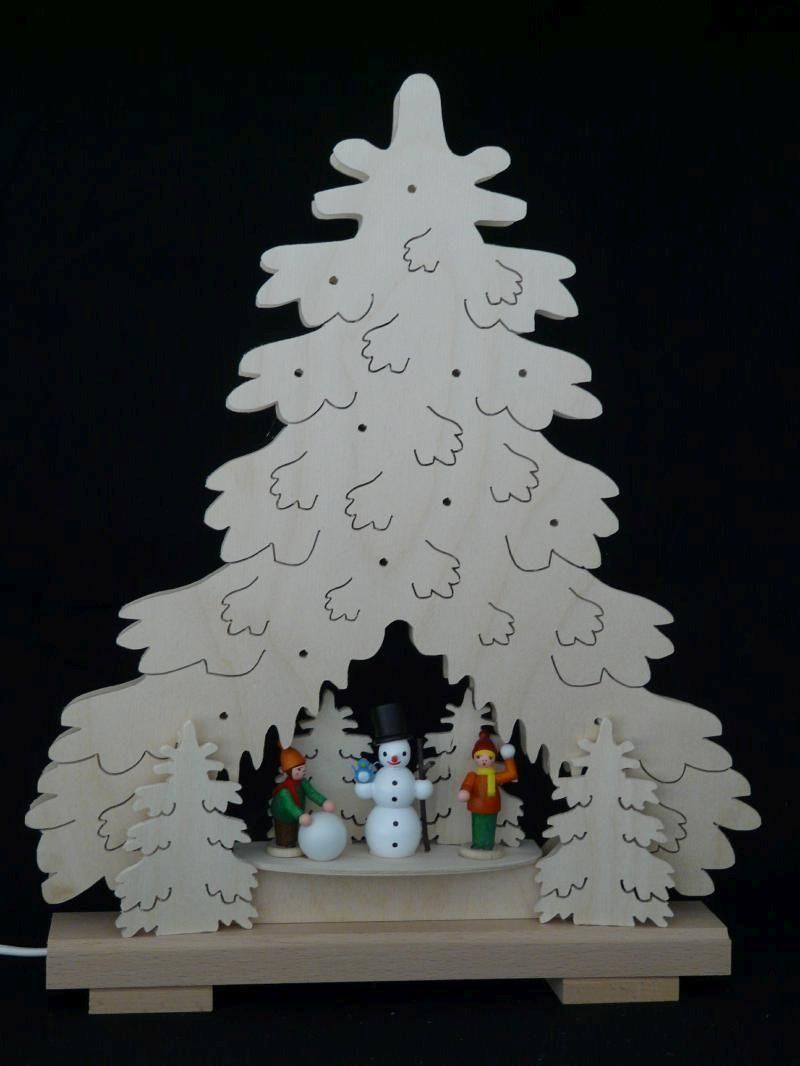 Schwibbogen mit Tanne mit Winterkinder Schneemann und Beleuchtung 44x51x7cm NEU