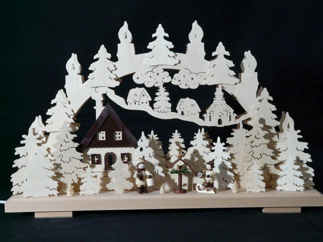 Schwibbogen mit Vogelfütterung und Beleuchtung BxHxT 50x31x7cm NEU Lich