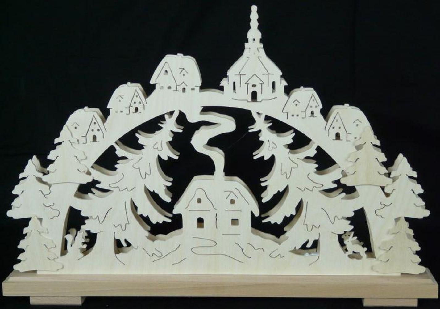 Schwibbogen mit Waldhaus Kirche und Beleuchtung BxHxT 50x33x7cm NEU Lichterbogen
