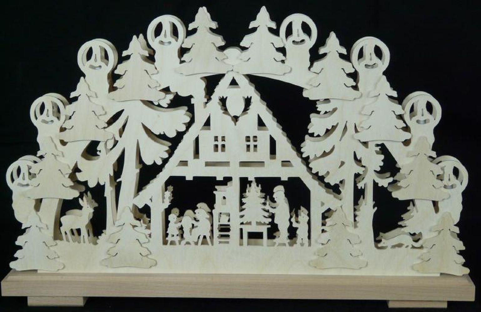 Schwibbogen mit Waldhaus und Beleuchtung BxHxT 50x31x7cm NEU Lichterbogen Fenster