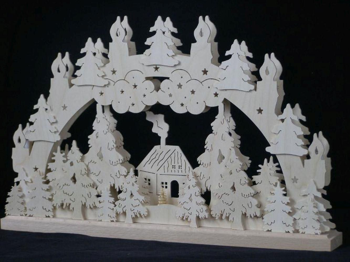 Schwibbogen mit Waldhütte und Beleuchtung BxHxT 50x32x7cm NEU Lichterbogen Fenste