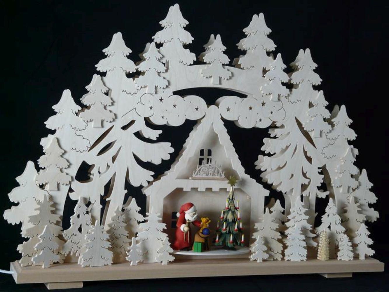 Schwibbogen mit Weihnachtsmann am Christbaum und Beleuchtung BxHxT 70x43x7cm NEU