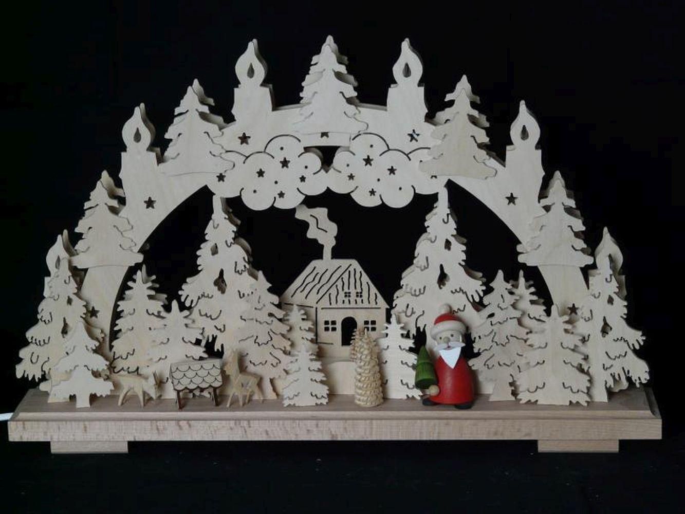 Schwibbogen mit Weihnachtsmann Futterkrippe und Beleuchtung BxHxT 50x31x7cm