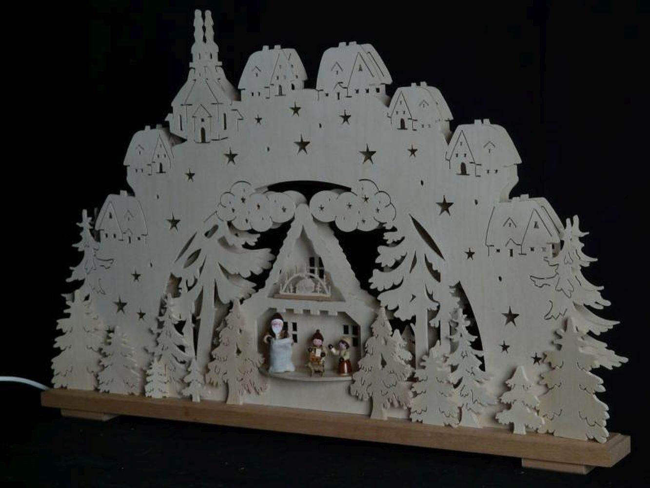 Schwibbogen mit Weihnachtsmann mit Kinder und Beleuchtung BxHxT 70x43x7cm NEU