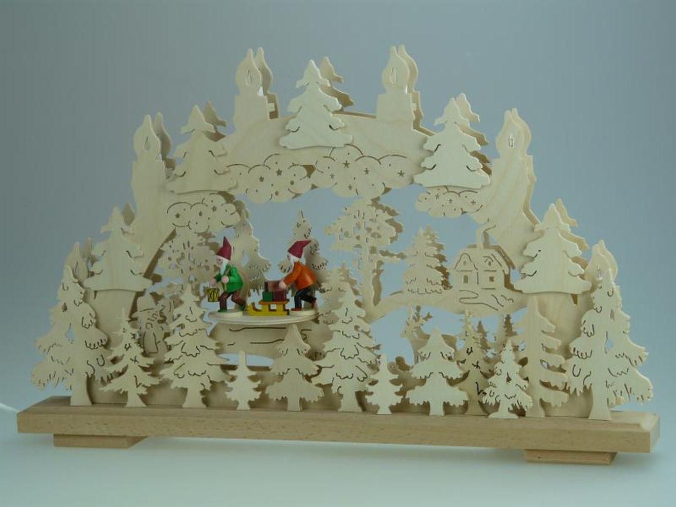 Schwibbogen mit Wichtel im Wald und Beleuchtung BxHxT 50x31x7cm NEU Lichterbogen