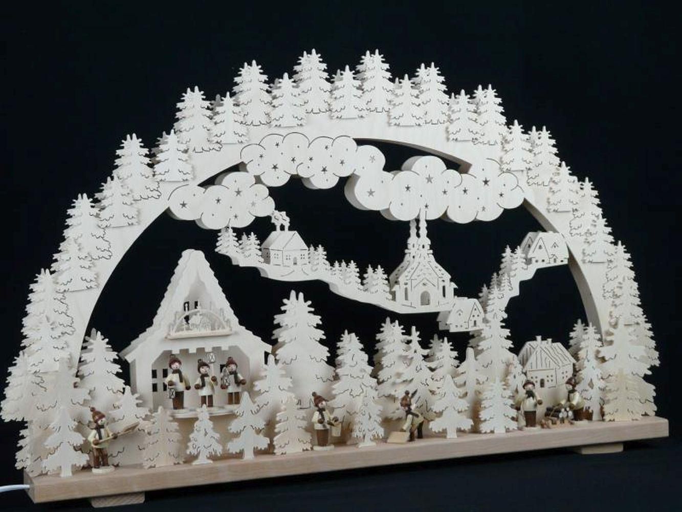Schwibbogen mit Winterkinder vorm Haus und Beleuchtung BxHxT 70x45x7cm NEU