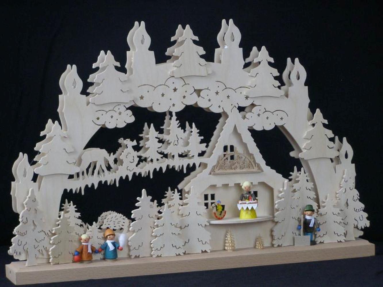 Schwibbogen mit Winterkindern Schneeschipper und Beleuchtung BxHxT 50x31x7cm NEU
