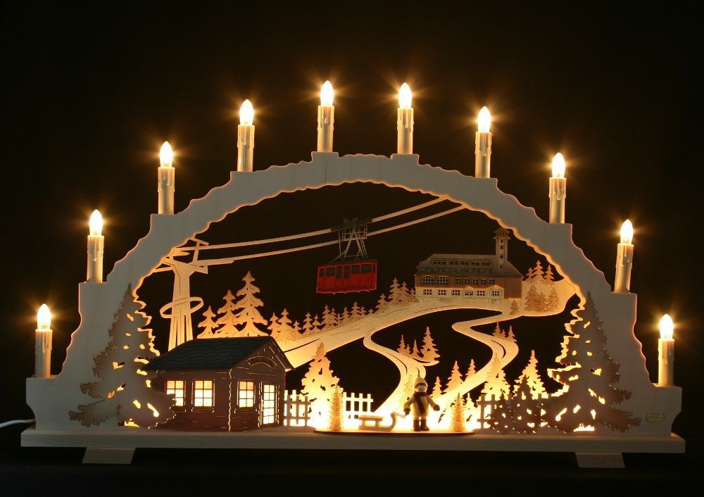 Schwibbogen Oberwiesenthal & Fichtelberg 70cm + LED Vorbeleuchtung Erzgebirge