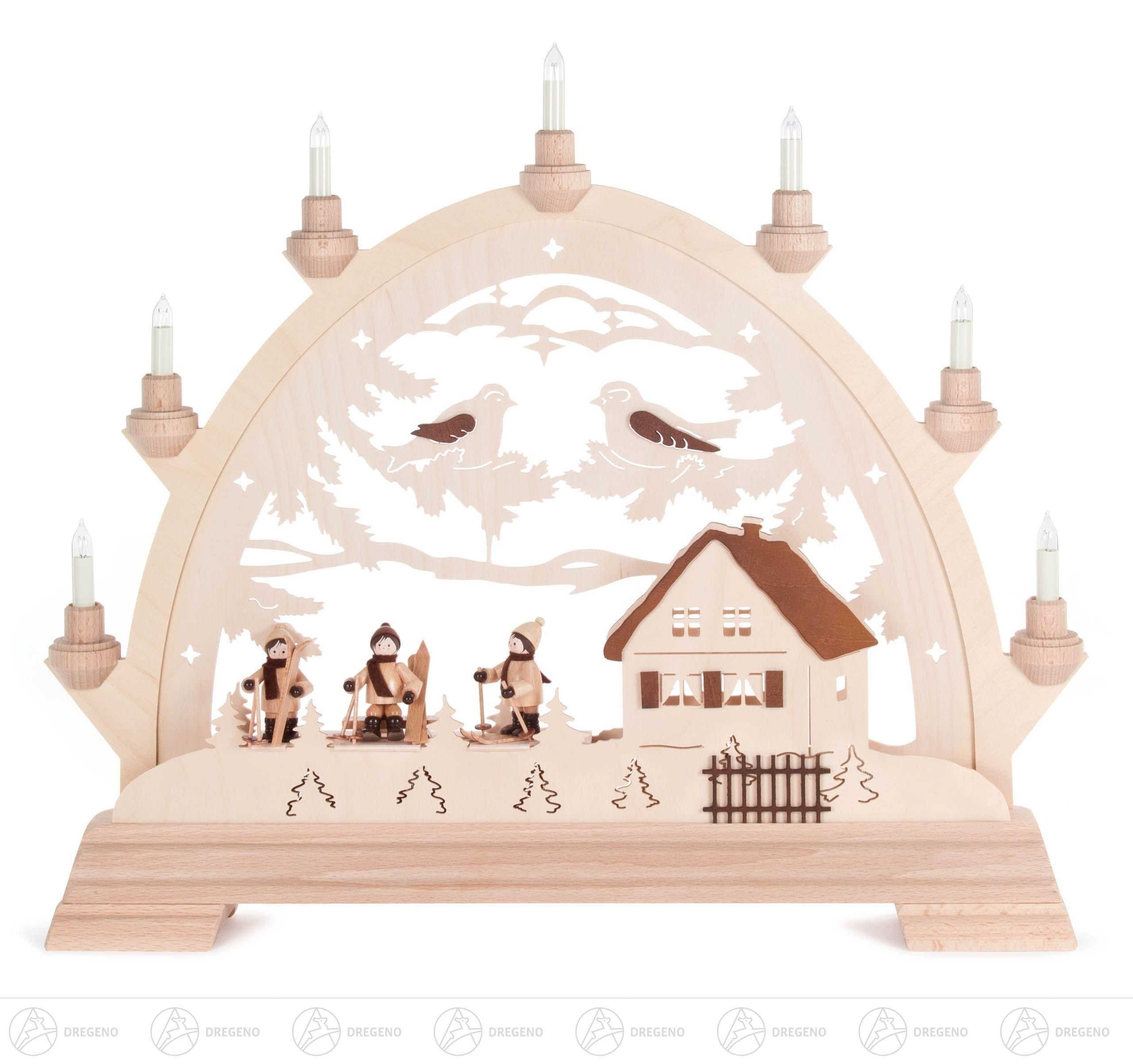 Schwibbogen Rundbogen mit Skifahrern, elektrisch beleuchtet 42,5 cmx48 cmx6,5 cm