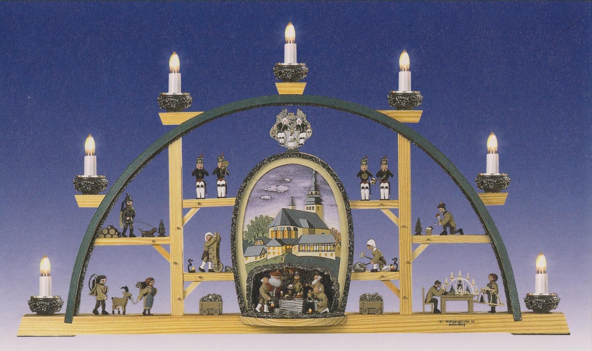• Schwibbogen Schneeberg St. Wolfgang Kirche Fa. Kolbe Erzgebirge Lichterbogen