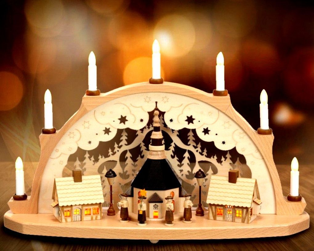Schwibbogen Seiffener Kirche innenbeleuchtet Erzgebirge Fachhändler Lichterbogen