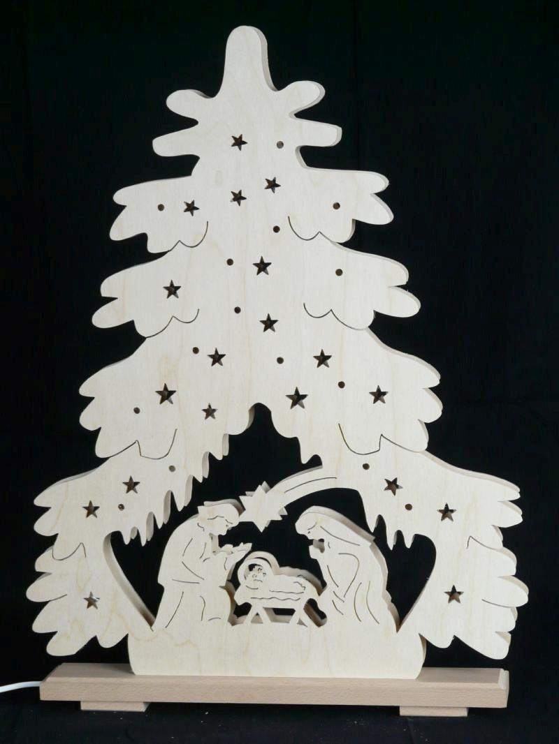 Schwibbogen Tanne mit Christi Geburt und Beleuchtung BxHxT 36x43x7cm NEU Lichterb