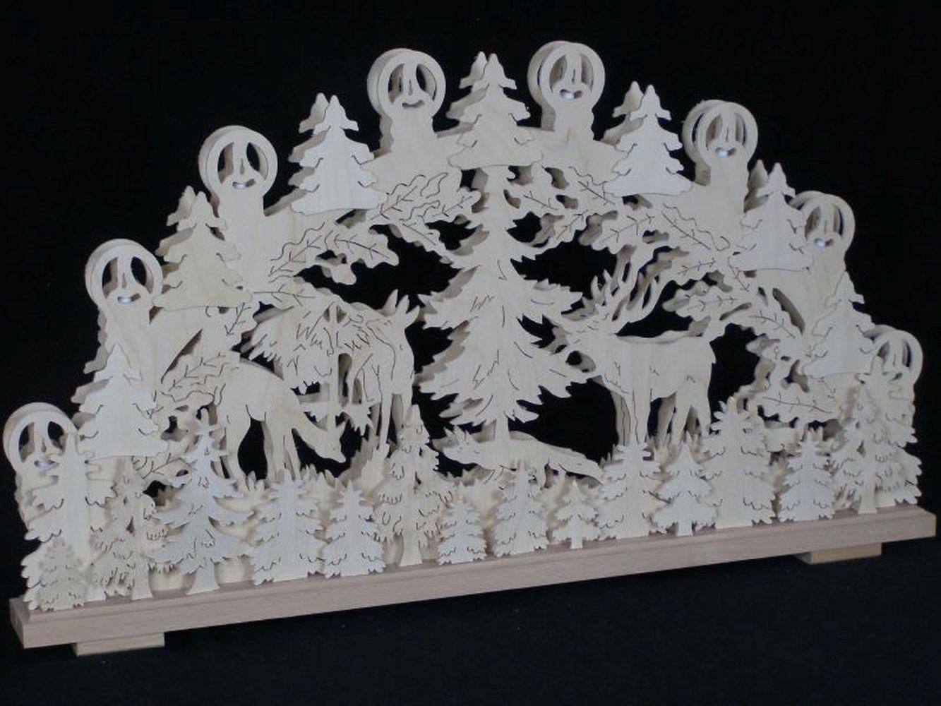 Schwibbogen Wildtiere an der Futterkrippe und Beleuchtung BxHxT 70x39x7cm NEU