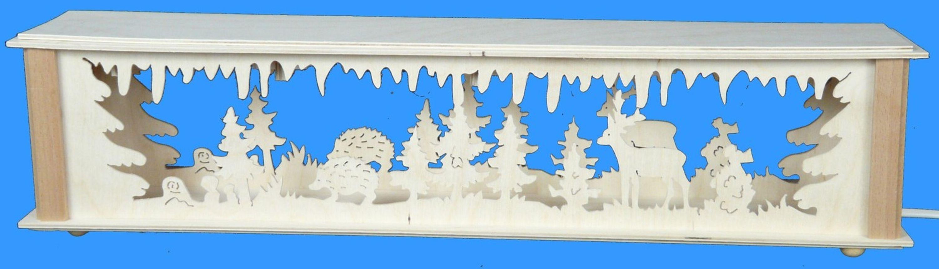 Schwibbogenerhöhung mit Igel Hirsche und Beleuchtung BxHxT 52x10x10cm NEU Lichter