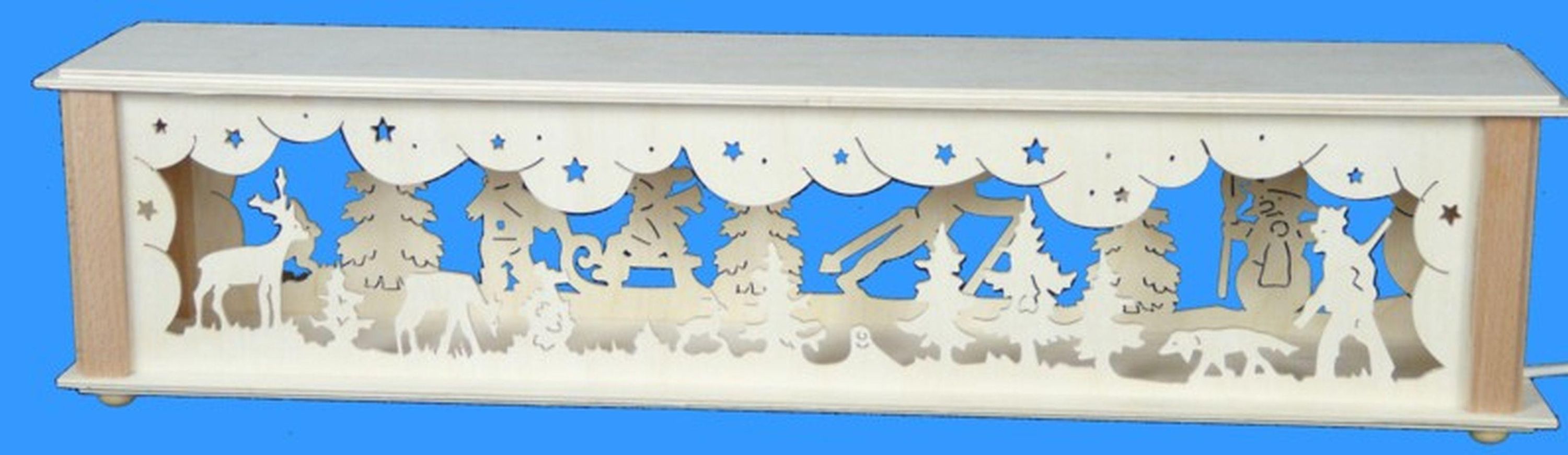 Schwibbogenerhöhung mit Jäger Waldtiere und Beleuchtung BxHxT 52x10x10cm NEU Lich
