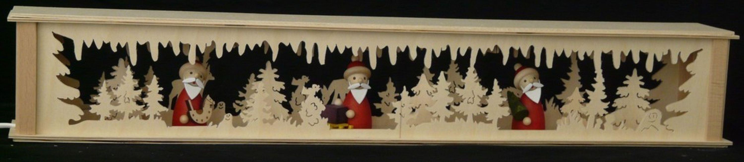 Schwibbogenerhöhung mit Weihnachtsmänner und Beleuchtung BxHxT 72x10x10cm NEU Lic