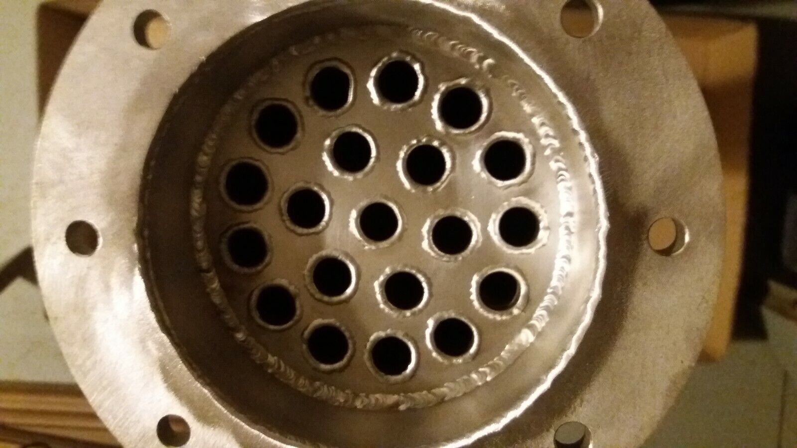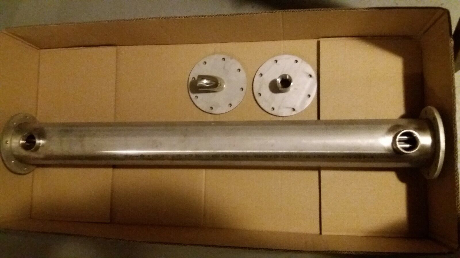 Anschlüsse 2x1 1 2zoll IG,2xFlansch mit gegenflansch.Länge 1000mm,Durchmesser104mm.ca 100 KW, Rohrbündelwärmetauscher. Technische Daten: Anschlüsse Abgasseite: Flansch Anschlüsse Wasserseite: 1 1 2 Zoll IG Gesamtlänge: 1000mm Länge Rohrbündel: 950mm Material: Edelstahl 1.4404. Energiekosten sparen d