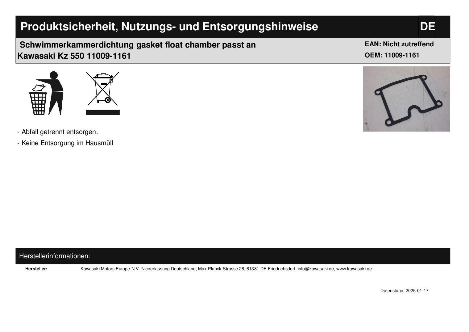 Schwimmerkammerdichtung gasket float chamber passt an Kawasaki Kz 550 11009-1161