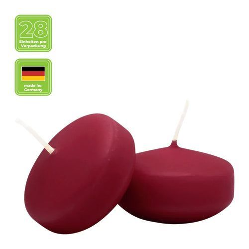 Schwimmkerzen klein, Altrot, 50/30 mm, WENZEL, Brenndauer ca. 4h, Box mit 28 Stück
