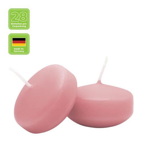 Schwimmkerzen klein, Antikrosa, 50/30 mm, WENZEL, Brenndauer ca. 4h, Box mit 28 Stück