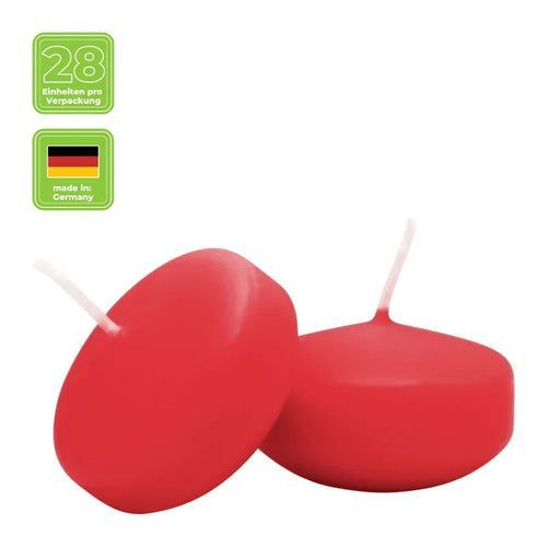 Schwimmkerzen klein, Rubin, 50/30 mm, WENZEL, Brenndauer ca. 4h, Box mit 28 Stück