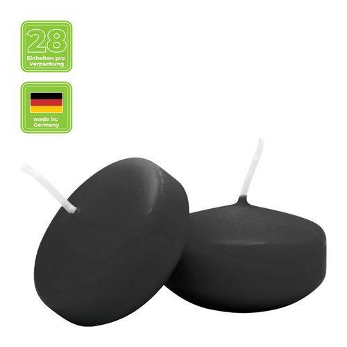 Schwimmkerzen klein, Schwarz, 50/30 mm, WENZEL, Brenndauer ca. 4h, Box mit 28 Stück