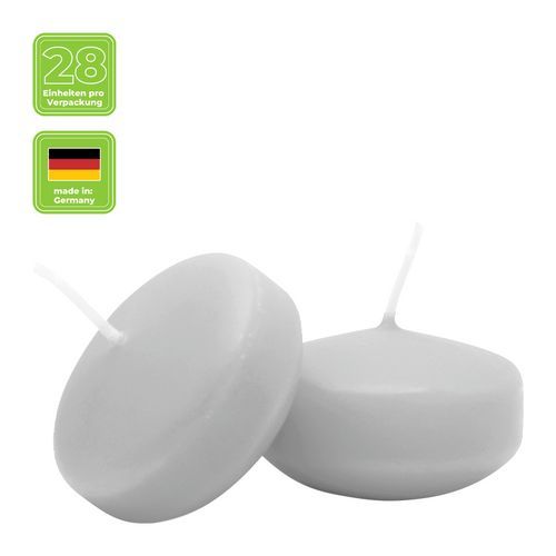 Schwimmkerzen klein, Silbergrau, 50/30 mm, WENZEL, Brenndauer ca. 4h, Box mit 28 Stüc