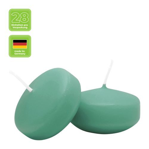 Schwimmkerzen klein, Smaragd, 50/30 mm, WENZEL, Brenndauer ca. 4h, Box mit 28 Stück