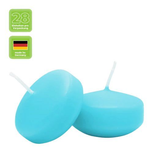 Schwimmkerzen klein, Türkis, 50/30 mm, WENZEL, Brenndauer ca. 4h, Box mit 28 Stück
