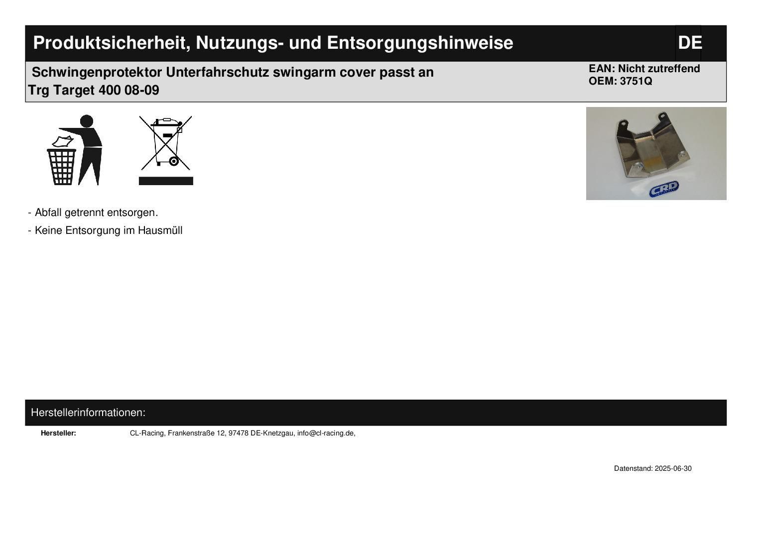 Schwingenprotektor Unterfahrschutz swingarm cover passt an Trg Target 400 08-09 In dieser Auktion gibt es folgenden Artikel zu kaufen: Schwingenprotektor (siehe Foto) Modell: passend für TRG Target 400 Bj.: 2008 - 2009 Avenger 400 Bj.: 2009 Blade 425 Bj.: 2008 - 2009 Target 500 Bj.: 2008 - 2009 Blad