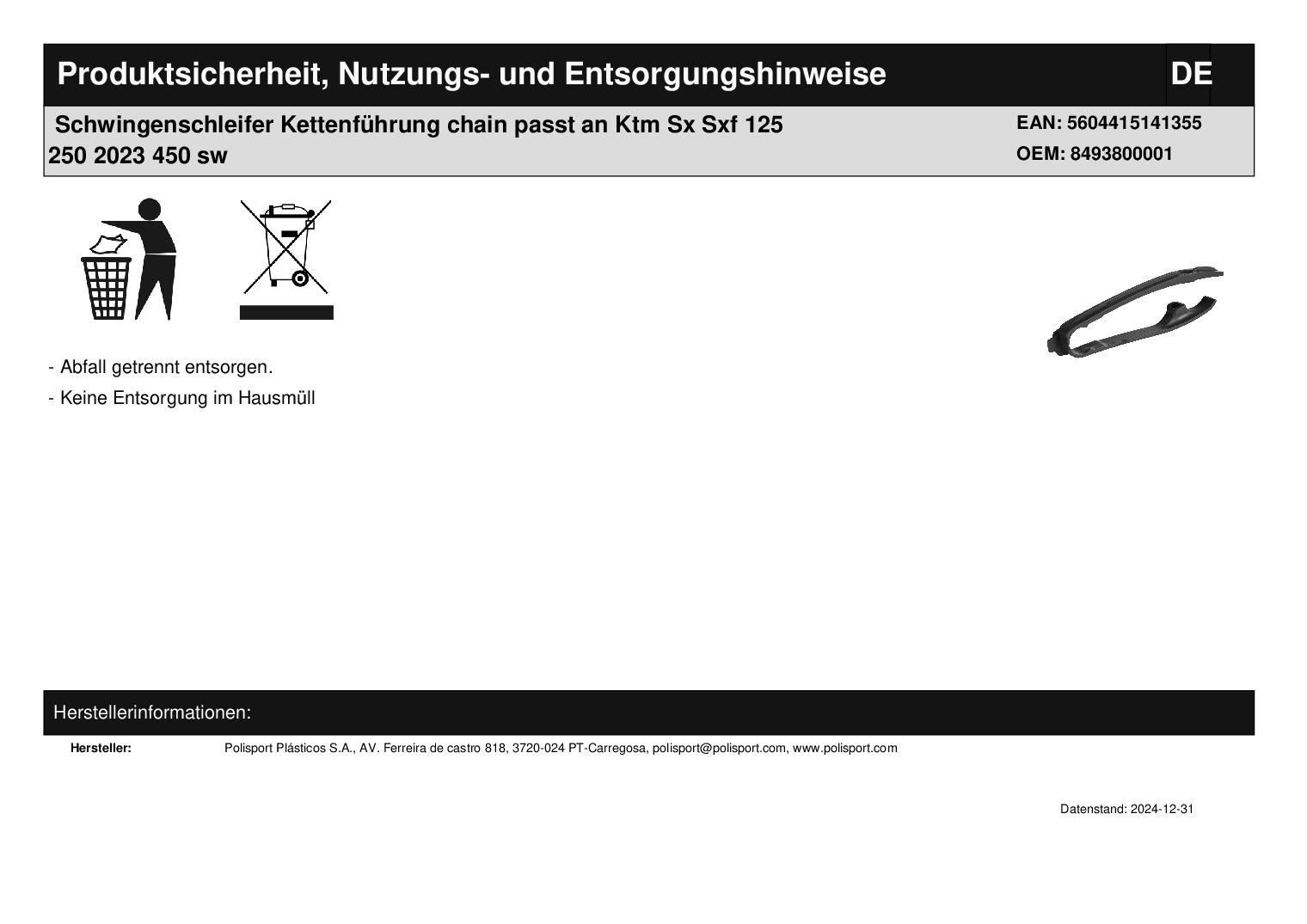 Schwingenschleifer Kettenführung chain guard passt an Ktm Sx 85 2025 sw