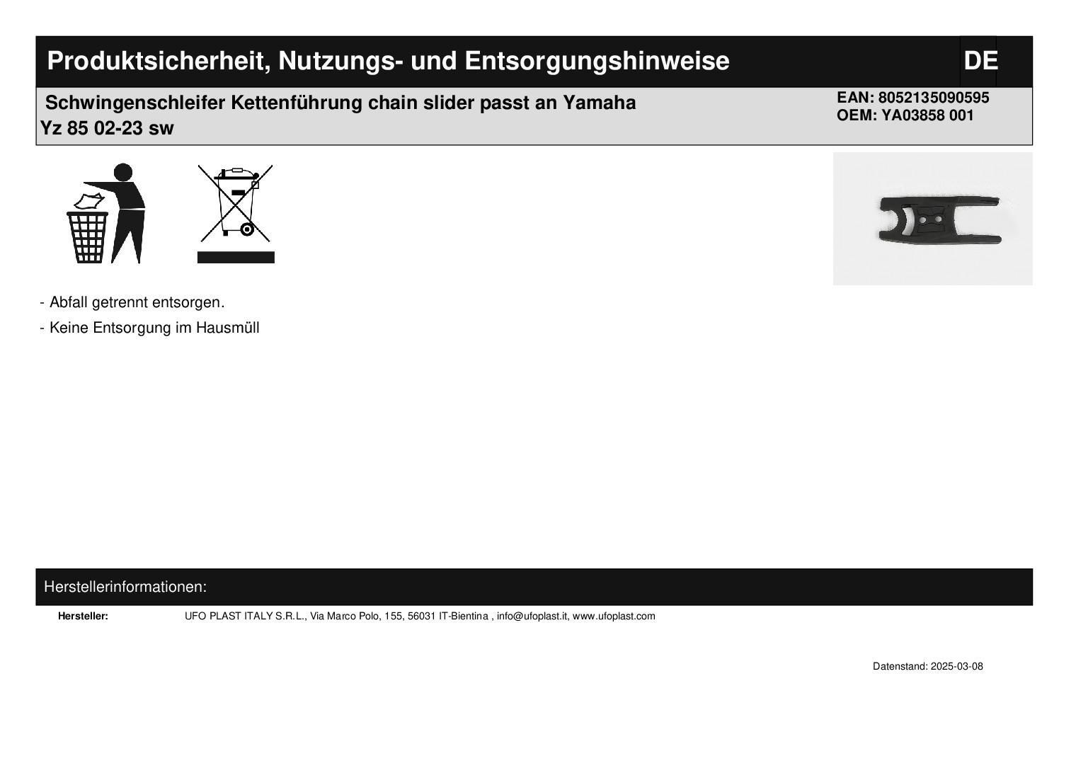Schwingenschleifer Kettenführung chain slider passt an Yamaha Yz 85 02-23 sw