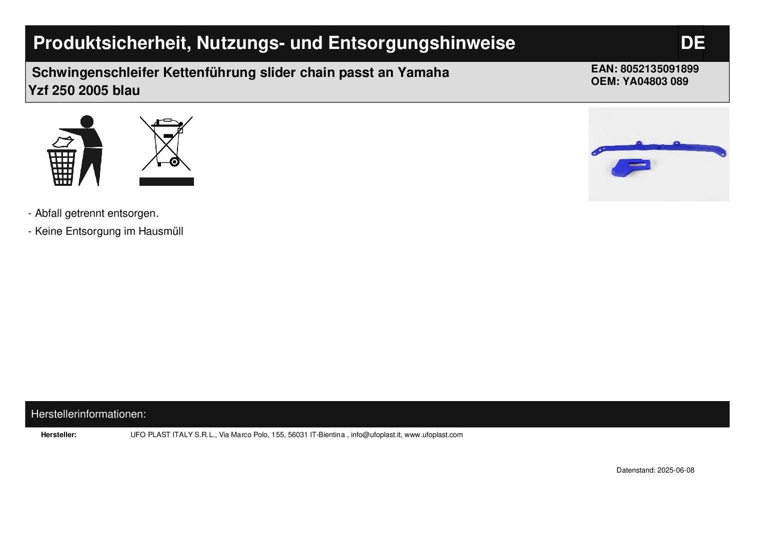 Schwingenschleifer Kettenführung slider chain passt an Yamaha Yzf 250 2005 blau