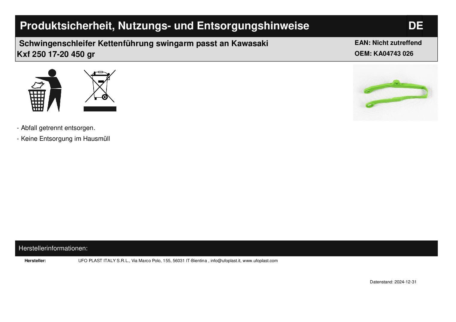 Schwingenschleifer Kettenführung swingarm passt an Kawasaki Kxf 250 17-20 450 gr