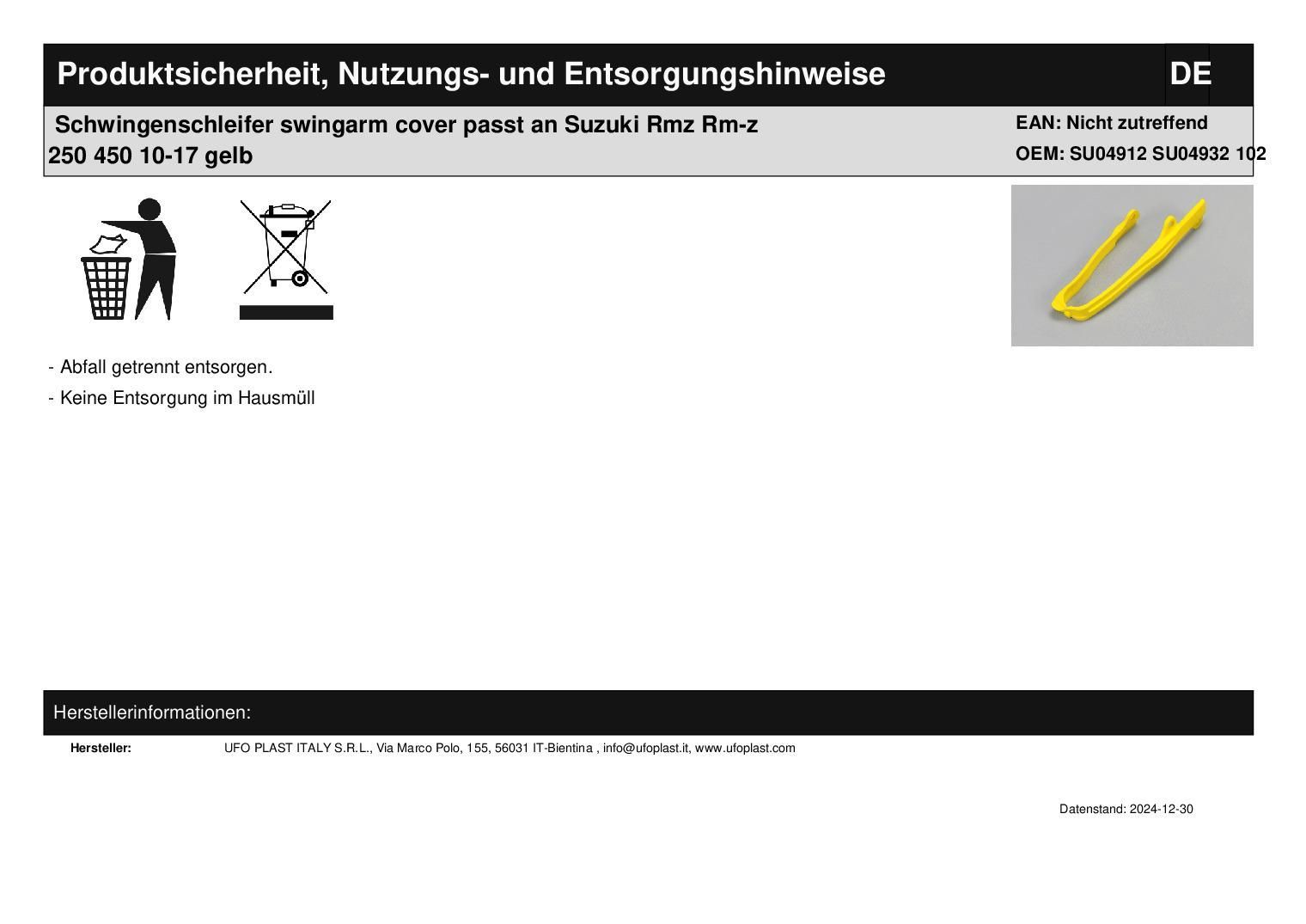 Schwingenschleifer swingarm cover passt an Suzuki Rmz Rm-z 250 450 10-17 gelb