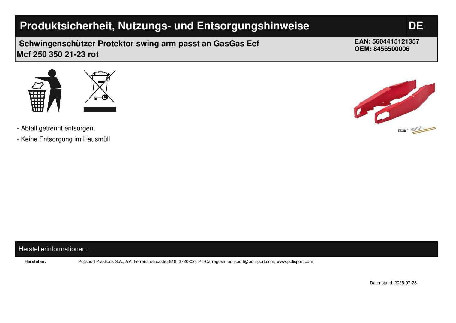 Polisport Schwingenschützer Protektor swing arm passt an GasGas Ecf Mcf 250 350 21-23 rot