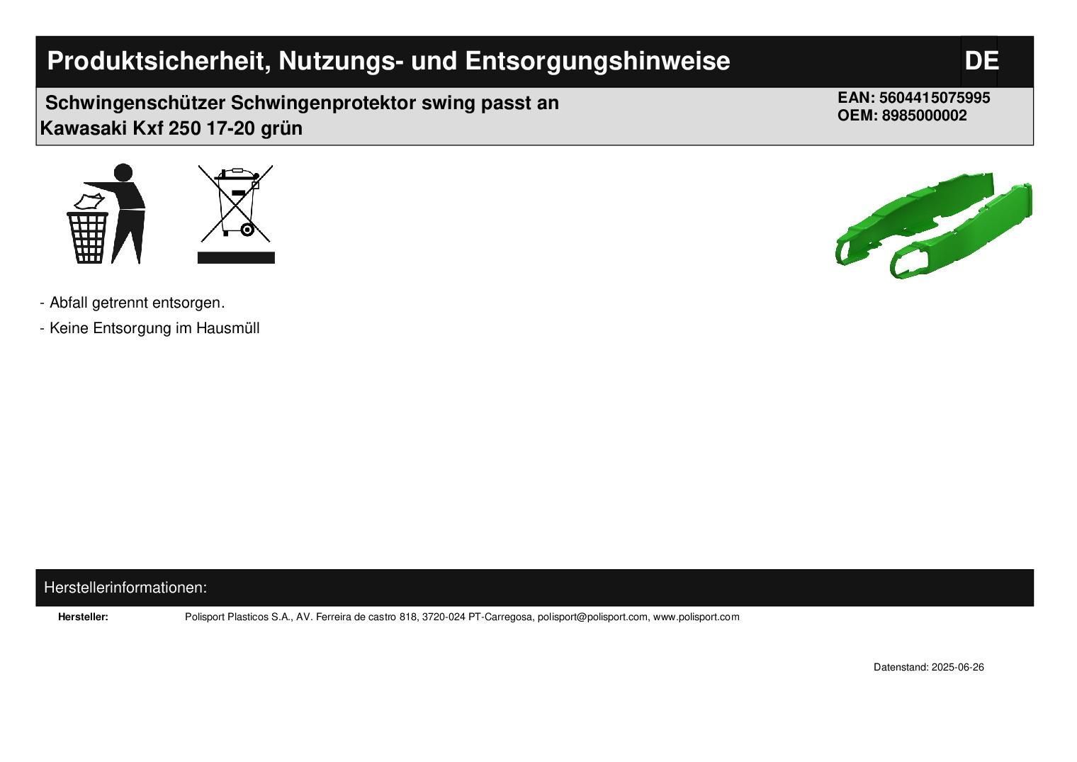 Polisport Schwingenschützer Schwingenprotektor swing passt an Kawasaki Kxf 250 17-20 grün