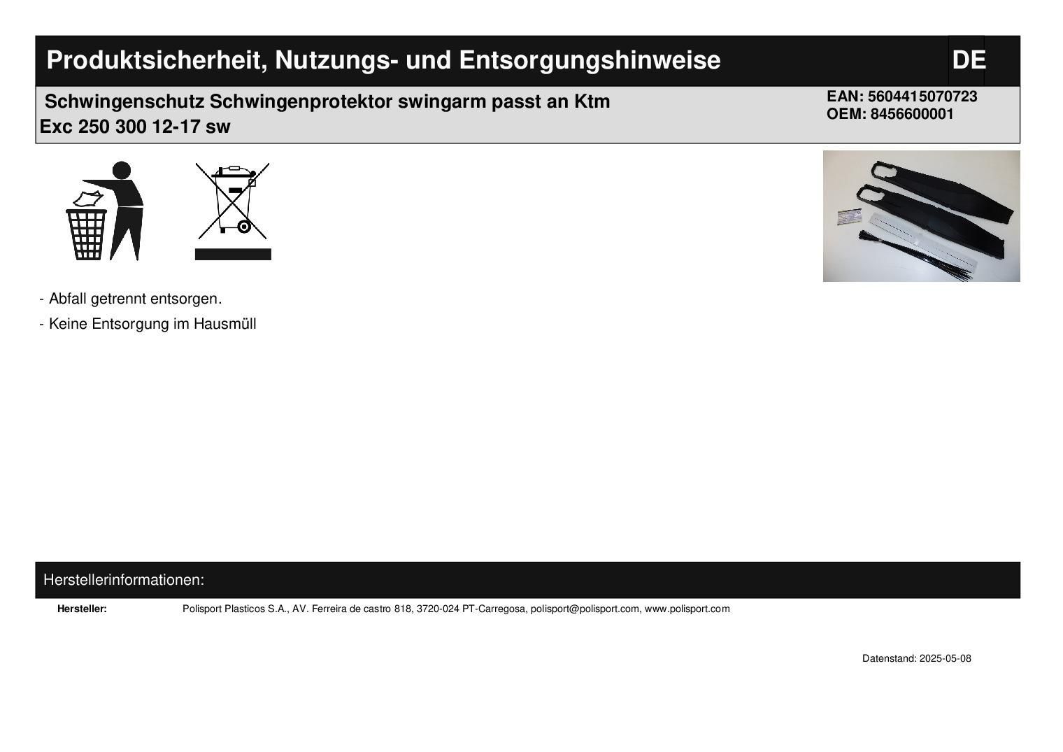 Polisport Schwingenschutz Schwingenprotektor swingarm passt an Ktm Exc 250 300 12-17 sw