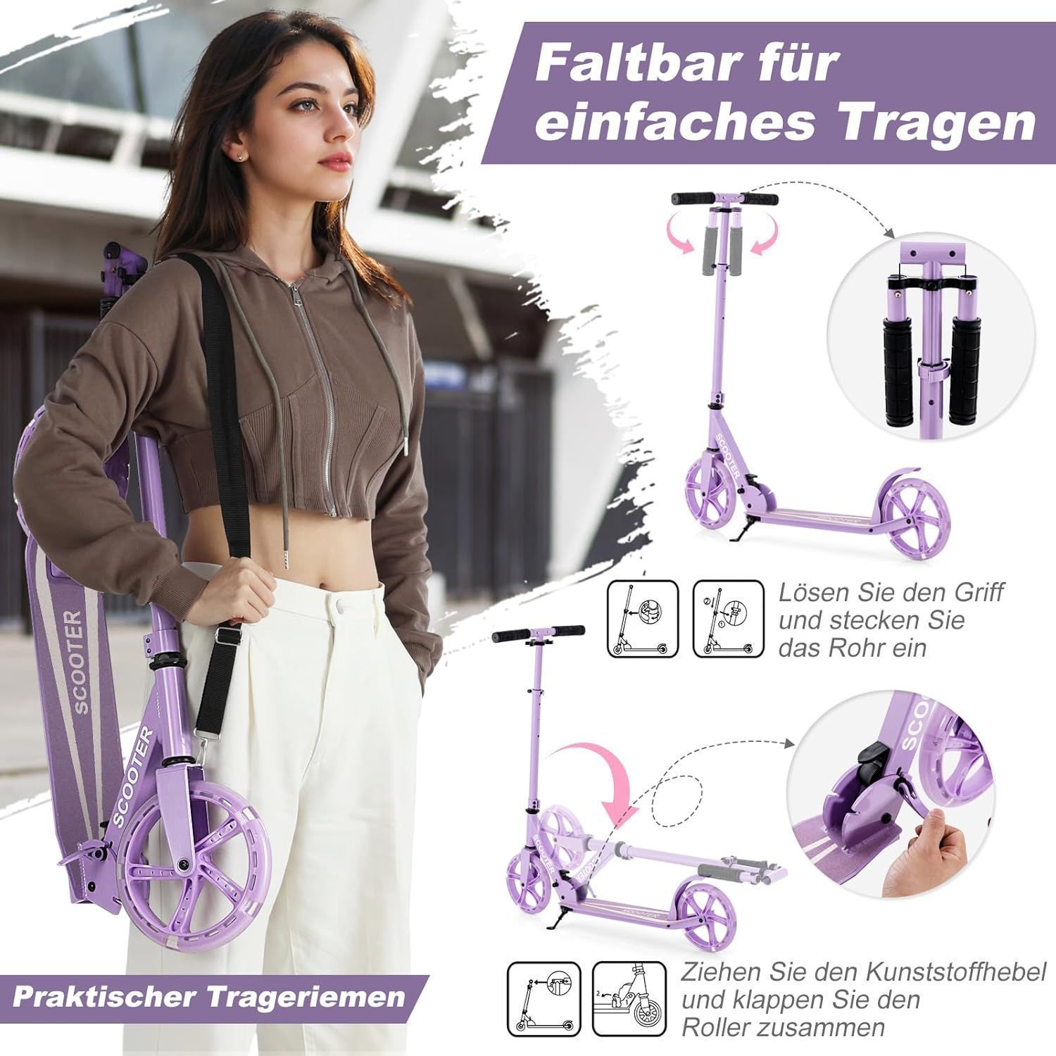 Scooter Roller klappbar, Tretroller höhenverstellbar, Cityroller 100kg Tragkraft