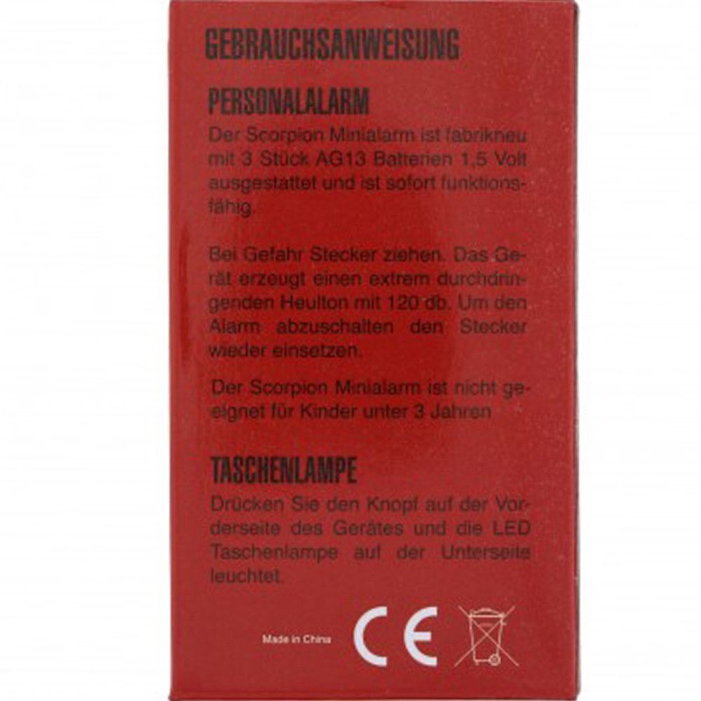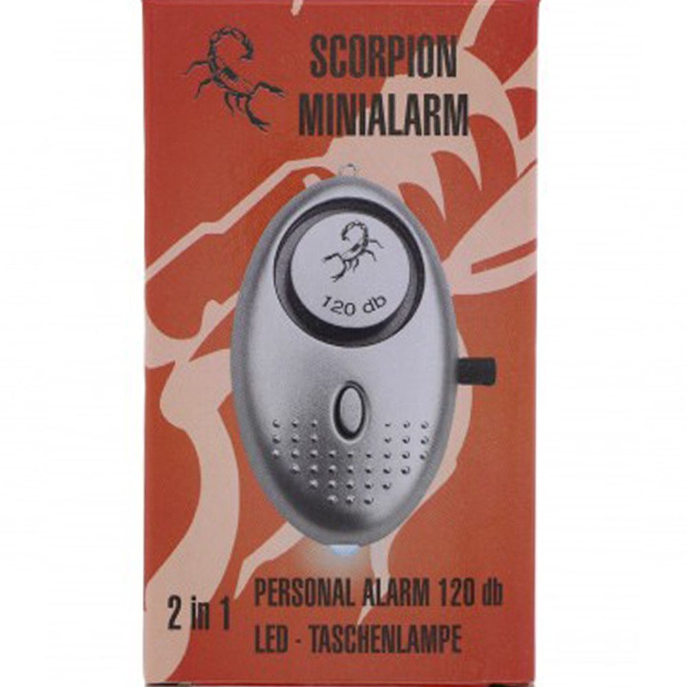 Scorpion Mini Personenalarm Taschensirene 120 db mit LED und Batterien silber